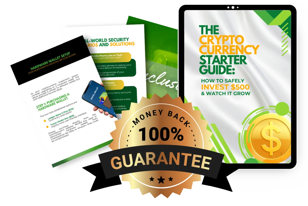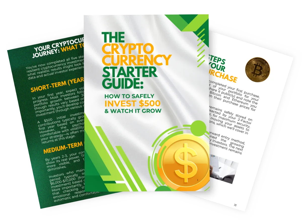 You’ll get the complete Cryptocurrency Starter Guide, packed with everything you need to begin confidently. Inside, you’ll discover why traditional banking is holding you back, how to enter the crypto market safely with Bitcoin and Ethereum, how to secure your assets, automate your investments, and manage your portfolio for long-term growth. The guide walks you through a proven step-by-step system that’s helped thousands grow their portfolios by 30–50% in their first year.
